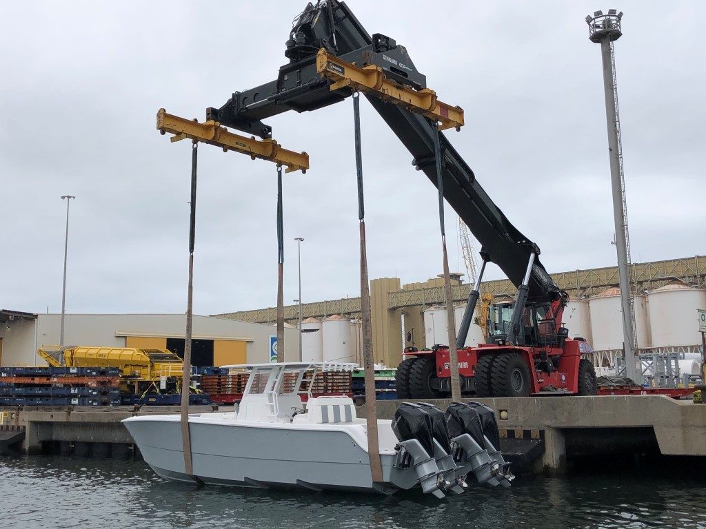 The first Invincible delivered to Australian shores is the 35-foot Catamaran, which landed at Port Kemblar, NSW, in early December. The boat went straight into the water and made its way to Boat Monster’s new premises at Sydney’s northern beaches, with easy access to Pittwater and Broken Bay.