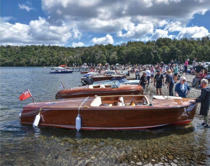 The boat was bought from the movie’s producers in 1980 by Picton’s Peter Carrington and immaculately restored over many years. He still owns her today, 43 years on. And as the Lake Rotoiti show demonstrated, Moonraker ll still has the ability to turn heads.
