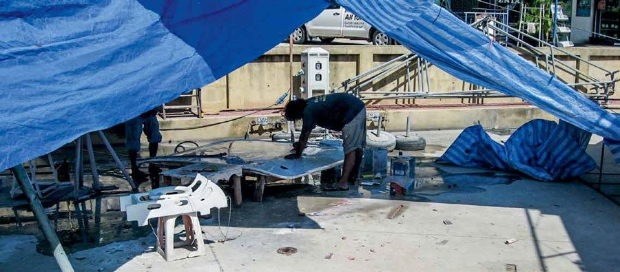 But back to the Rebak haul-out, where my husband Pete, advised and helped by various other cruisers, undertook the next repair on the stern gland. Sadly, that also failed. This meant a 150nm sail up to Phuket in Thailand to Boat Lagoon to, once again, get the professionals on the job.