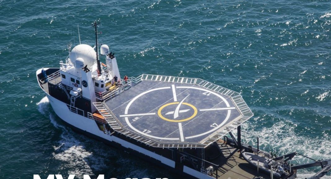 The vessel was renamed, MV Megan in early 2022 in honour of astronaut Megan McArthur, the second woman to fly on board a SpaceX Dragon capsule.