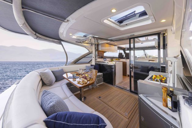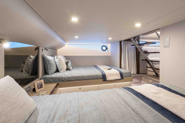 The 4600 Sport Yacht integrates many impressive features you’d expect from a much larger yacht. The contemporary profile creates exceptional volume with a spacious aft deck, luxurious saloon, gourmet galley and a generous three stateroom, two-bathroom accommodation deck boasting a full-beam master suite.