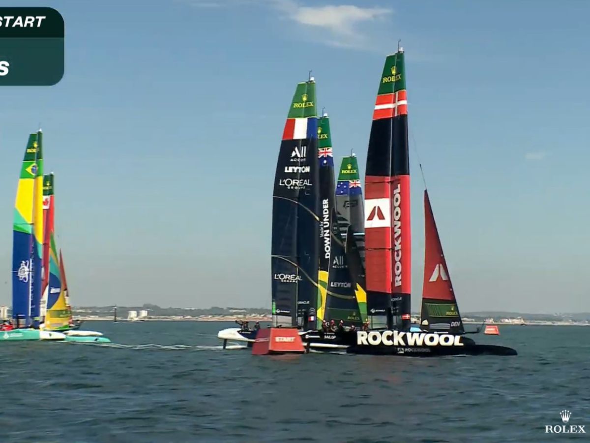 The Bay of Cádiz shimmered under light morning air as Race 5 got underway — the first race of Day 2, and the fifth of the event. After Saturday’s drama, only one point separated leaders Rockwool Denmark and Emirates GBR, while New Zealand’s Black Foils sat third on 22 points.