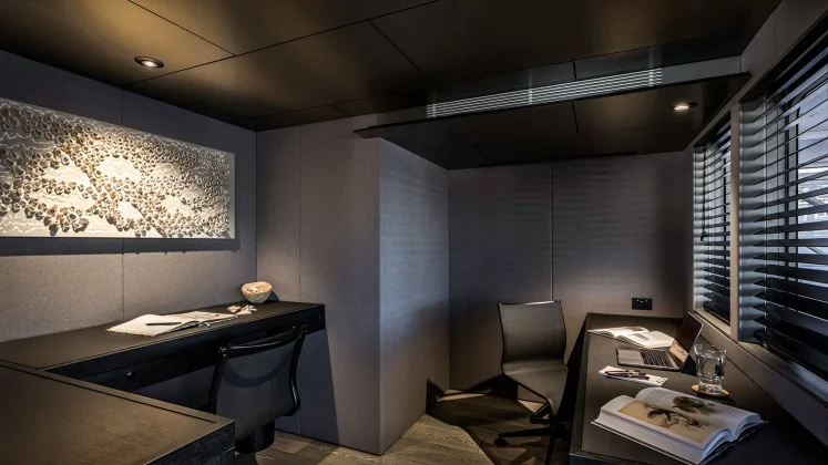 For crew, there are four cabins (sleeping nine) and a dedicated crew mess adjacent to the service galley.