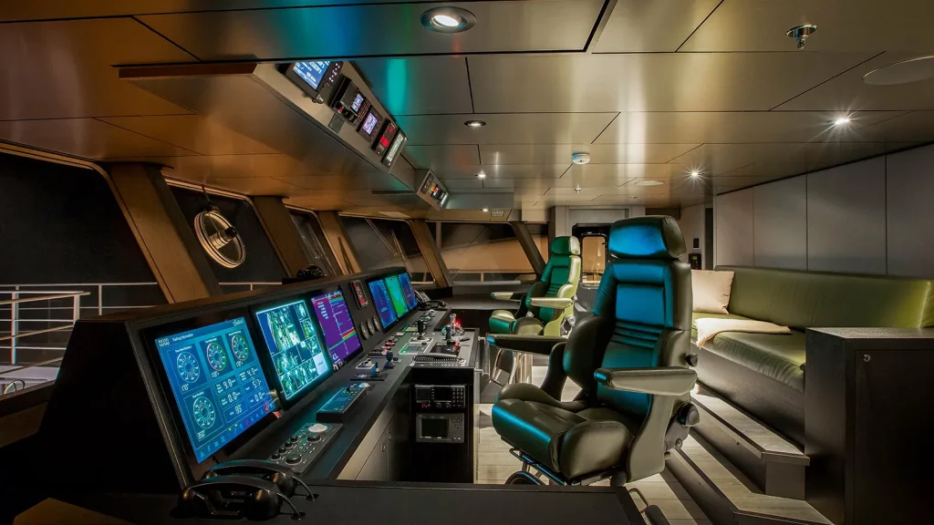 The Beast‘s operating scale is not insignificant: commercial-style systems, large crew complement (nine for the guest complement), and infrastructure suitable for global cruising.