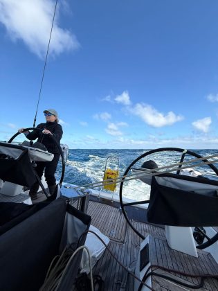 While seas remain lively, the worst of the chop is easing — a welcome change after two days of heavy going across the Tasman.