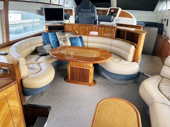 You will spend plenty of time on the flybridge. The seating layout is relaxed and social, and visibility from the helm is excellent. Whether you are entering a tight marina or running the coast, the view from above makes everything easier. When the weather turns, you can shift down to the raised pilothouse helm and carry on with good protection.