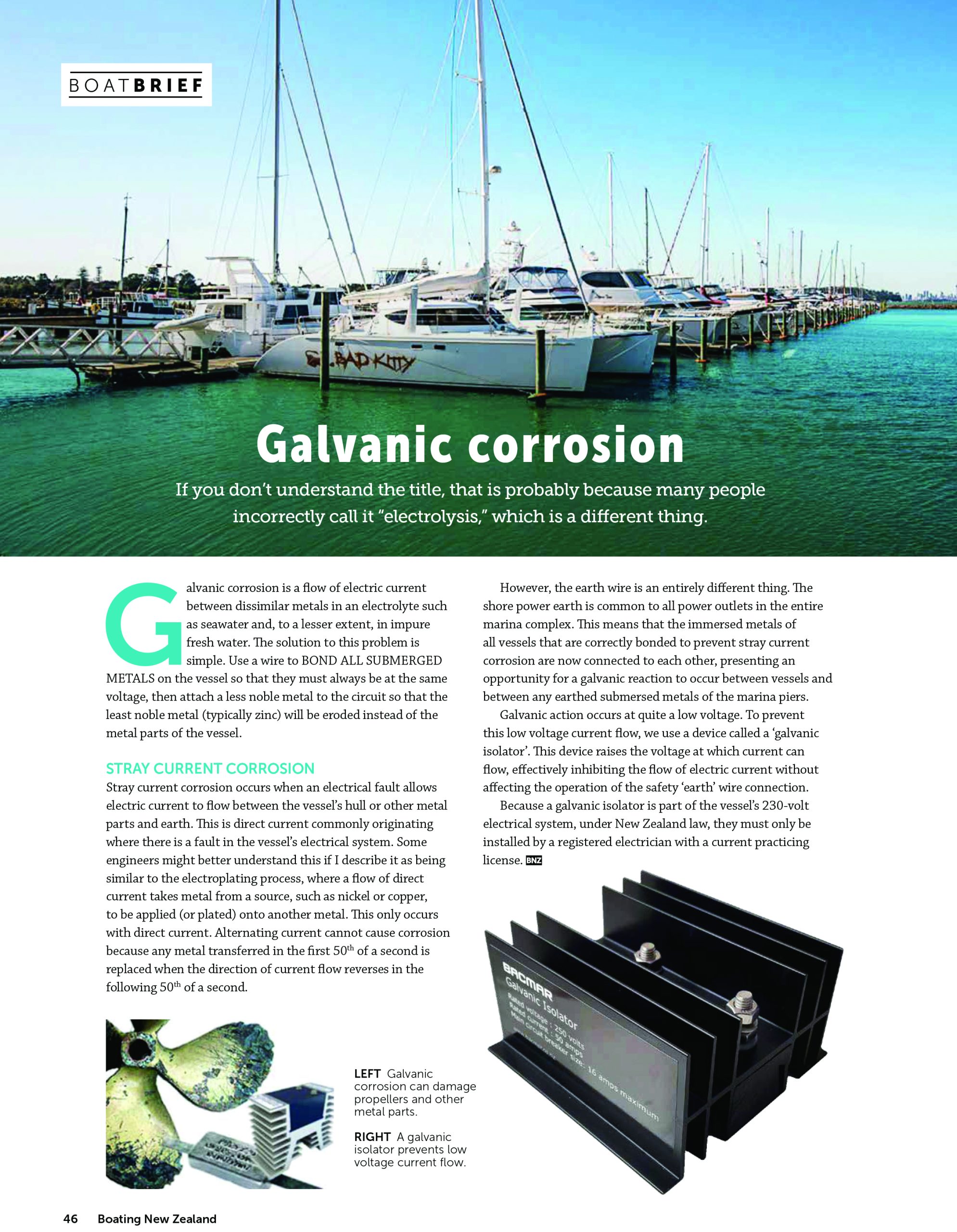 With respect to the article in September’s Boating NZ on Galvanic Corrosion, I would strongly suggest owners of WOODEN boats do not follow this advice.