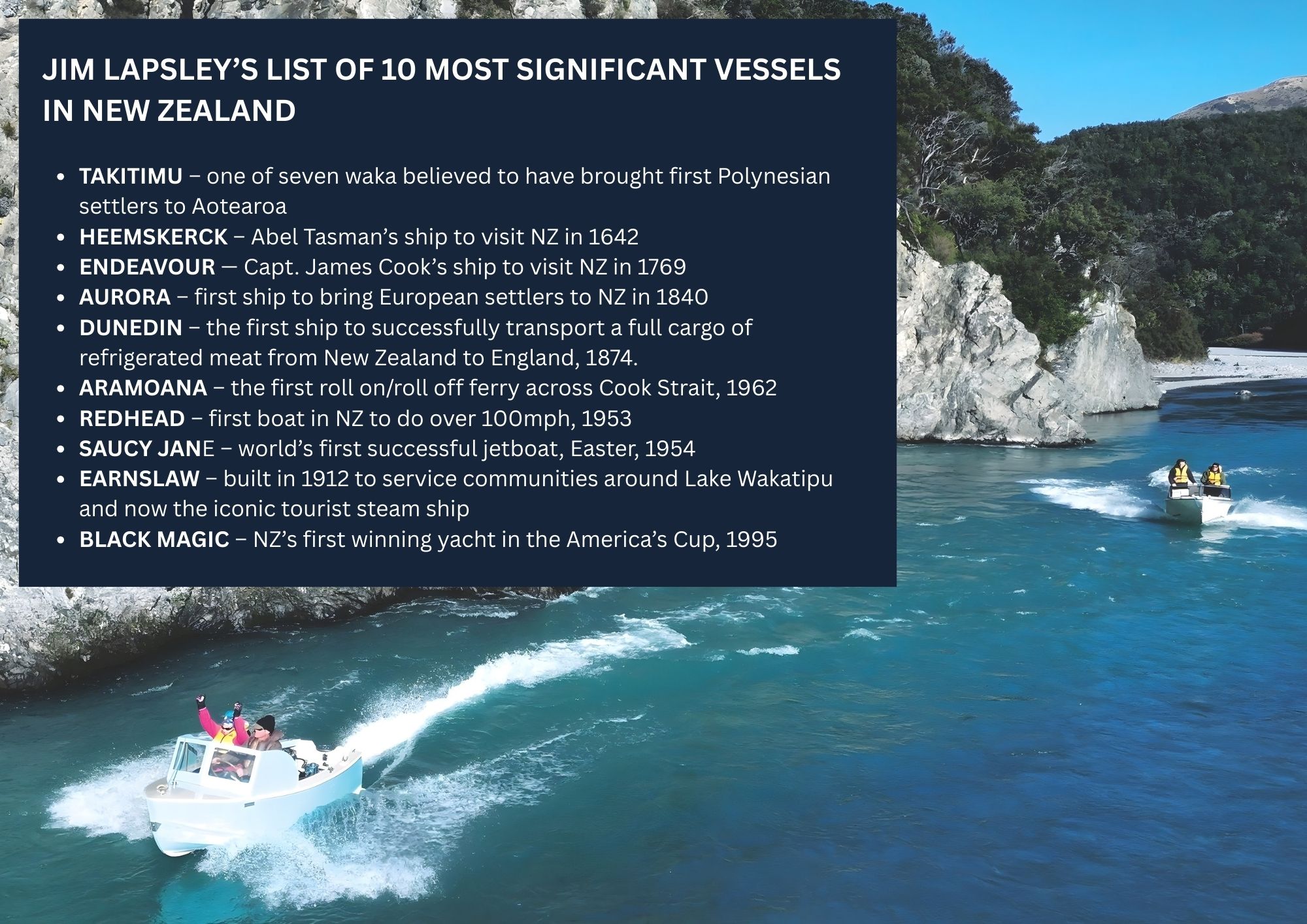 Jim Lapsley is the holder of a very special, very personal list. It’s not a list of ‘things to do’; instead, it’s a list of what he considers the 10 most significant boats in New Zealand’s history. It includes Takitimu, one of seven waka believed to have bought first Polynesian settlers to Aotearoa; Endeavour, Captain James Cook’s ship that visited these shores in 1769; and Dunedin, which in 1874 became the first ship to successfully transport a full cargo of refrigerated meat from New Zealand to England. There’s another name on the list, perhaps less known but whose legacy today spans the globe: Saucy Jane. This very simple 13ft dinghy was Sir William (Bill) Hamilton’s experimental boat and the first successful jetboat of its kind that would plane and allowed the user to travel upriver. And, in Jim Lapsley’s opinion, the vessel thoroughly deserves its place.