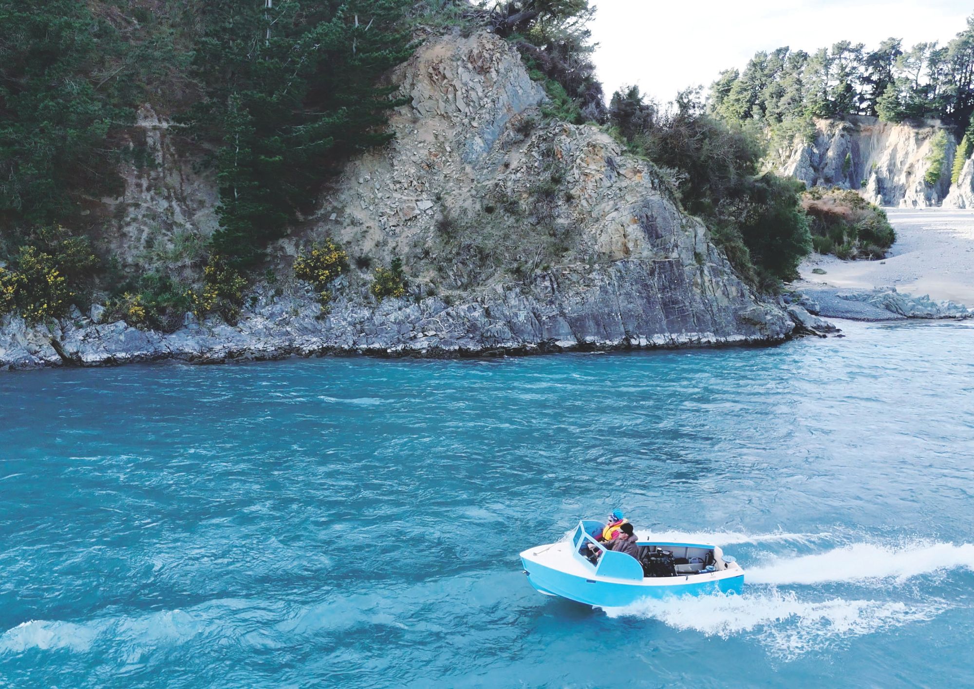 “The performance is underwhelming, but it’s awesome to drive,” he says. “We can get her up to 30mph downriver; you slide into corners like a rally car, and it handles beautifully. In fact, I had a guy try to follow me up the Waimak on one occasion, but he couldn’t go far with me because Saucy Jane’s hull has a 5 degree V which allows us to access some very shallow spots.