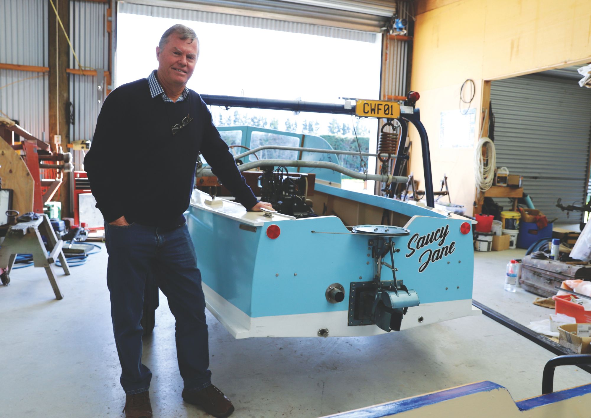 Now retired and living near Christchurch, Jim’s refurbishment projects don’t stop with Saucy Jane. In his large shed lie several other hulls under repair or reconstruction as well as one small dinghy that he’s building with the help of his young grandchildren. Boating’s been a huge part of his life, and he seems intent on ensuring another generation enjoys the same excitement and opportunities.
