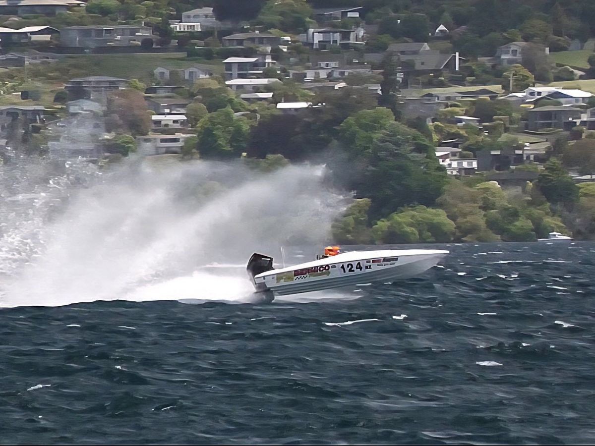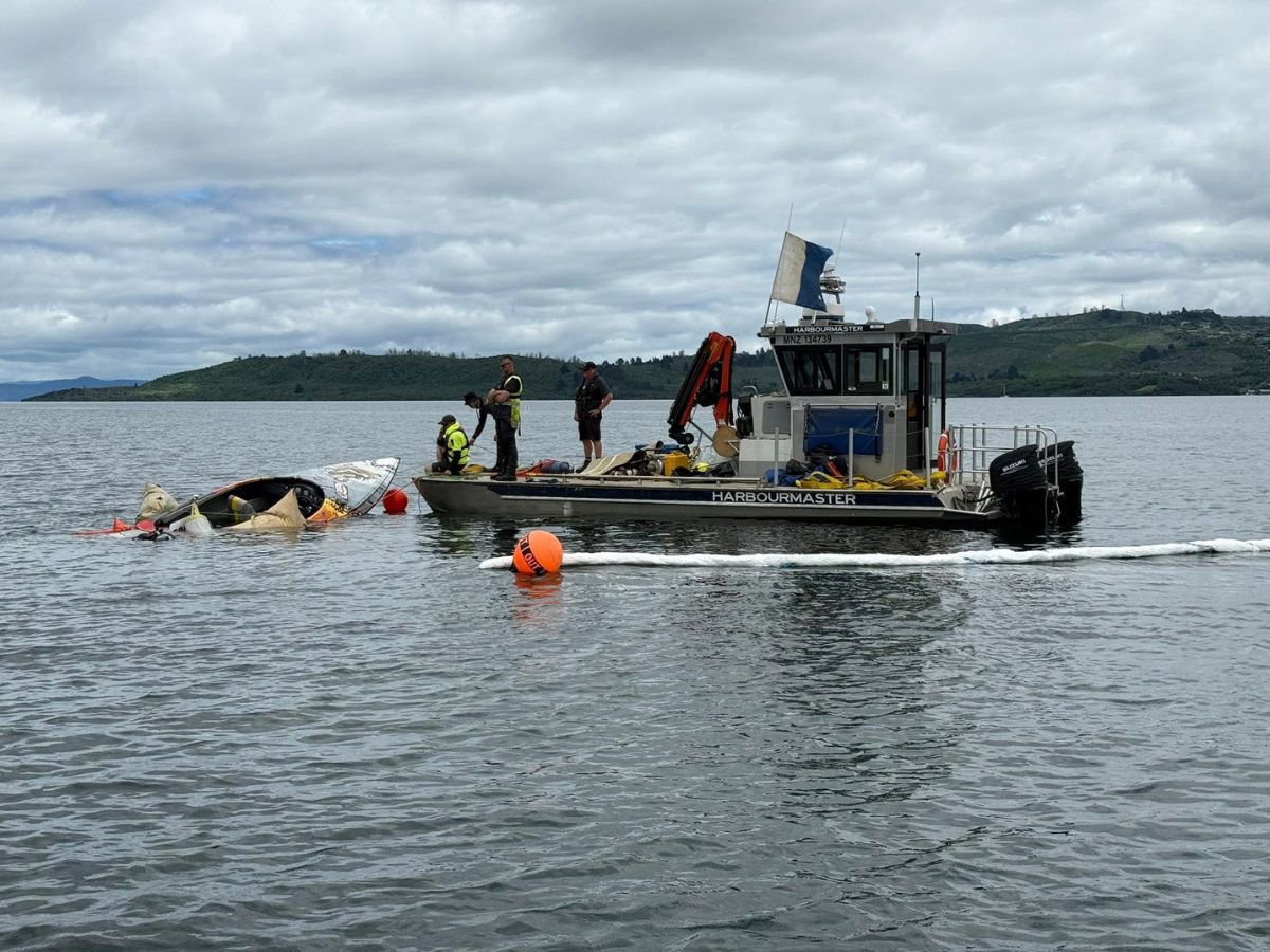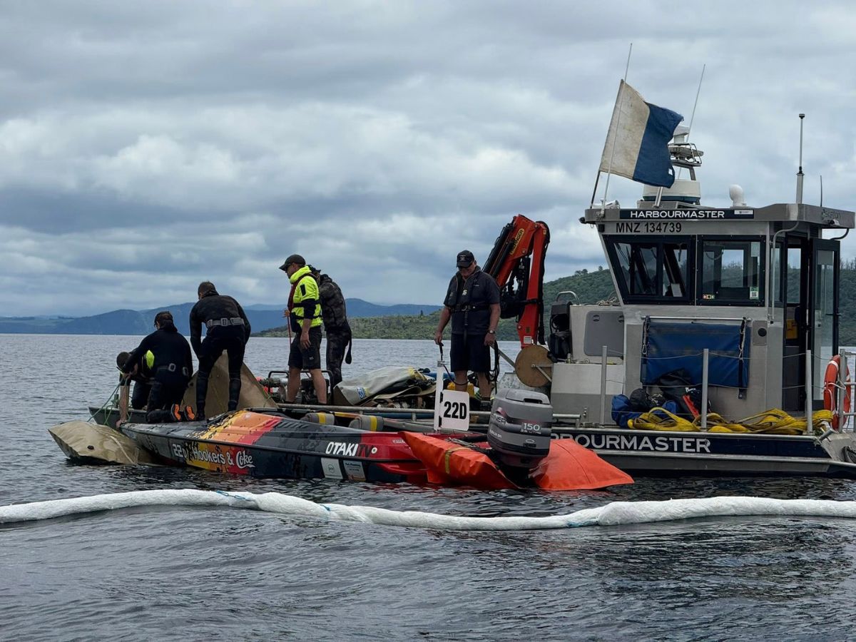 Lake Taupō’s foul mood sinks race boat, now safely lifted