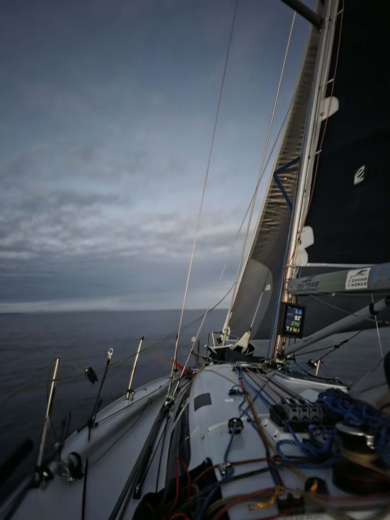 Ocean’s Tribute is moving too, lifting into the breeze in the Channel and skipping along at 11.7 knots after a couple of very slow days out there.