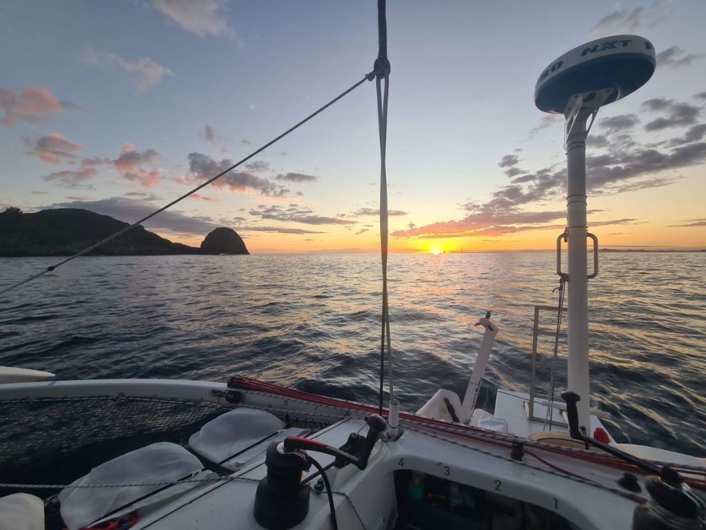 We are going to report in that we are rounding the Cavallis and dawn is coming. We had some lightning and a bit of rain. There was a decent downpour for about an hour before we reached Cape Brett, but it now looks like it will be a lovely day.
