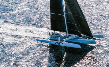 Just to the west, the only multihull in the fleet was sailing a different race. Ocean’s Tribute, the Queensland-based Lock Crowther trimaran, had tacked away from the monohulls and punched into clear water of her own. Soon after she tacked again and headed further east towards Equilibrium, out where the gusts and shifts were easier to work.