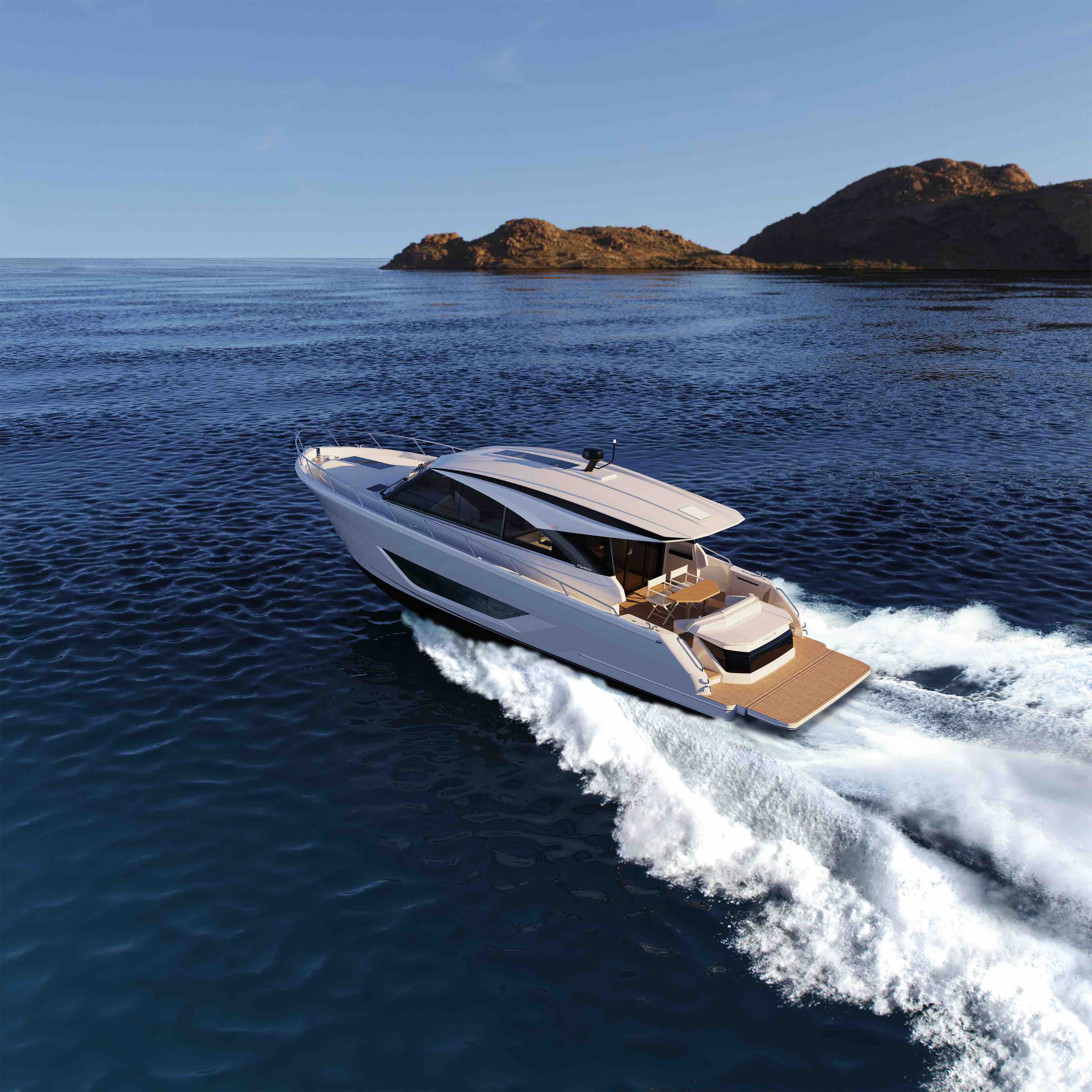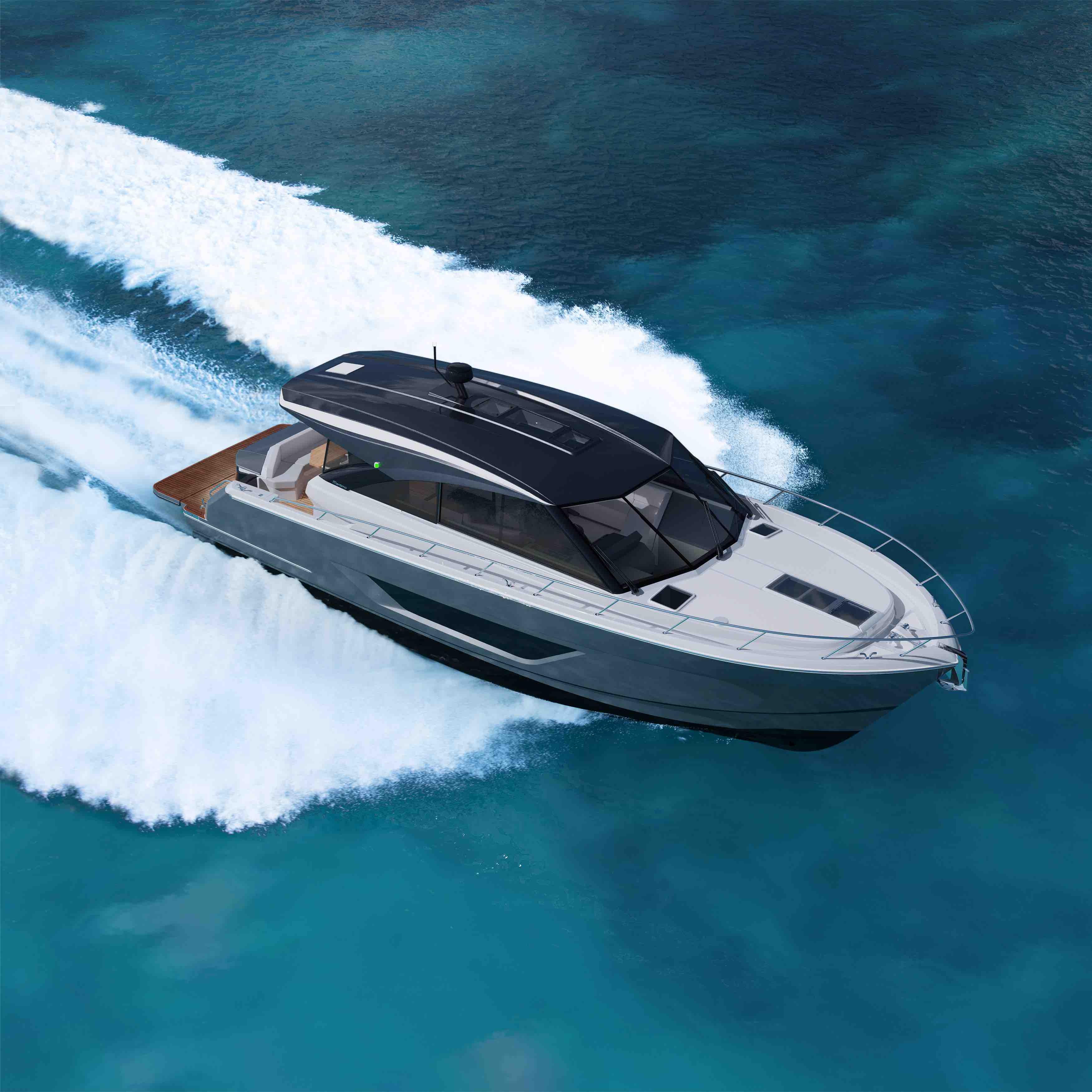 Below the surface, the hull carries a sharper cabin window profile and revised laminates for better efficiency and seakeeping.