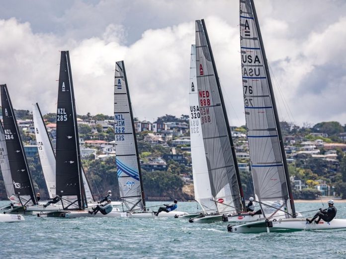 Auckland’s Milford Cruising Club hosted a picture-perfect start to the PredictWind A-Class Catamaran World Championships 2025, as the world’s fastest single-handed cats gathered for the two-day Pre-Worlds warm-up regatta. Held 8–9 November off Castor Bay, the event set the tone for a week of world-class racing on Auckland’s northern waters.