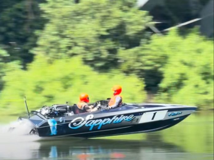 By Saturday morning, heat shimmered off the river as the 2025 NZ Bridge 2 Bridge Waterski Classic roared into action. Team Sapphire, driver Tim Pickford, observer Jack Battye, and skiers Cameron and Lachlan Nix, led from the start. Looking at the time trial details alone, their down- and upriver time-trial runs of 7 minutes 44 seconds and 8 minutes 06 seconds combined for 15 minutes 50 seconds, securing both Open Class and overall victory.