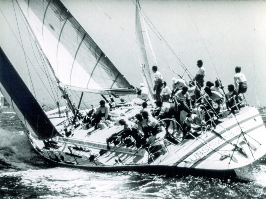 Until then no one had designed a maxi constructed from a foam-carbon-kevlar sandwich. Bowler, in combination with Du Pont and Richard Honey from High Modulus, engineered the lightweight construction, allowing a better ballast ratio and an internal aluminium space frame for the rigging loads. Farr did two similar designs for the same race – Atlantic Privateer, for Padda Kuttel and NZI Enterprise for the late Digby Taylor. UBS Switzerland won the Whitbread comfortably by two days.