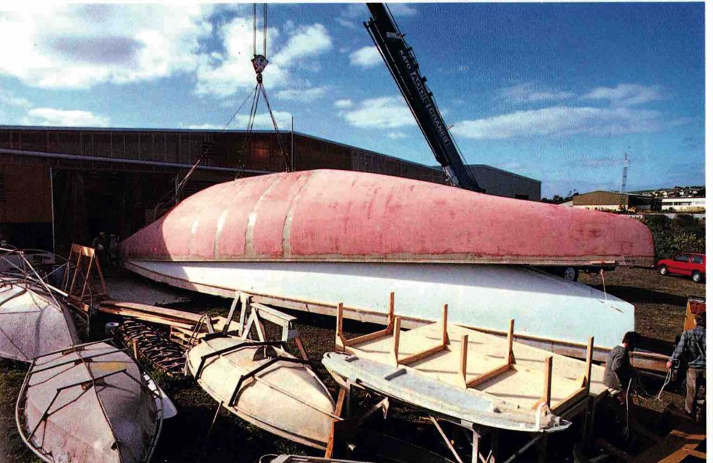 Bowler was not convinced this assumption was valid, as the complex shape of a 12m yacht potentially made it stiffer. Additionally, a GRP 12m would require far less fairing, and thanks to the use of a mould, two identical boats could be built more quickly. Given Perth’s boisterous conditions and the tight timeframe, these were significant advantages.