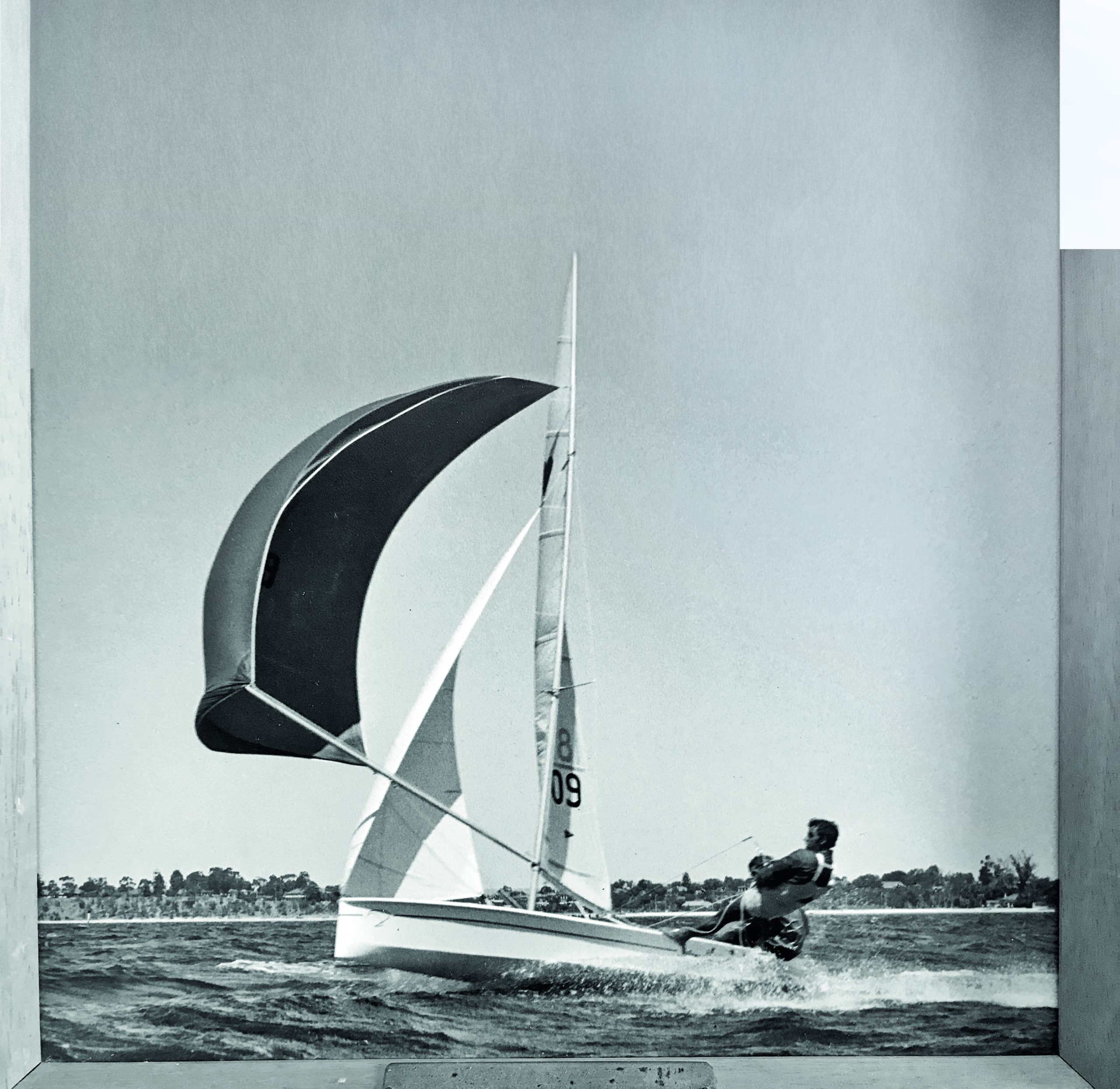 Farr hadn’t forgotten his dinghy roots either, and his 12- and 18-footer designs were top of their respective classes. Watching the 18-foot fleet in Auckland inspired Bowler back into yachting. With the aid of some sponsorship from WD & HO Wills, he started designing and building an 18-footer.