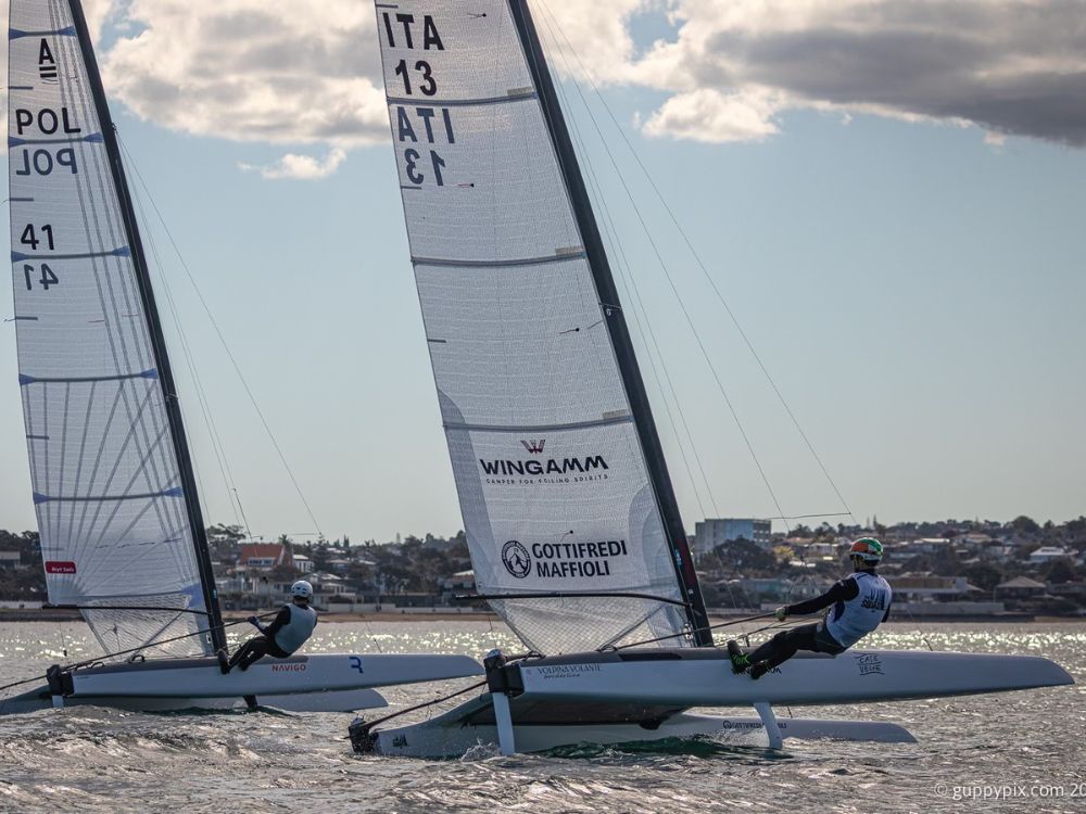 Close behind is Ravi Parent (USA 76), the 2022 world champion and one of the few sailors (the other being the legendary Glenn Ashby) to have won the A-Class Worlds, F18 Europeans, and F18 World Championship titles all in the same year (2022). After mixed results last year, he’s back in form and hungry to reclaim the crown.