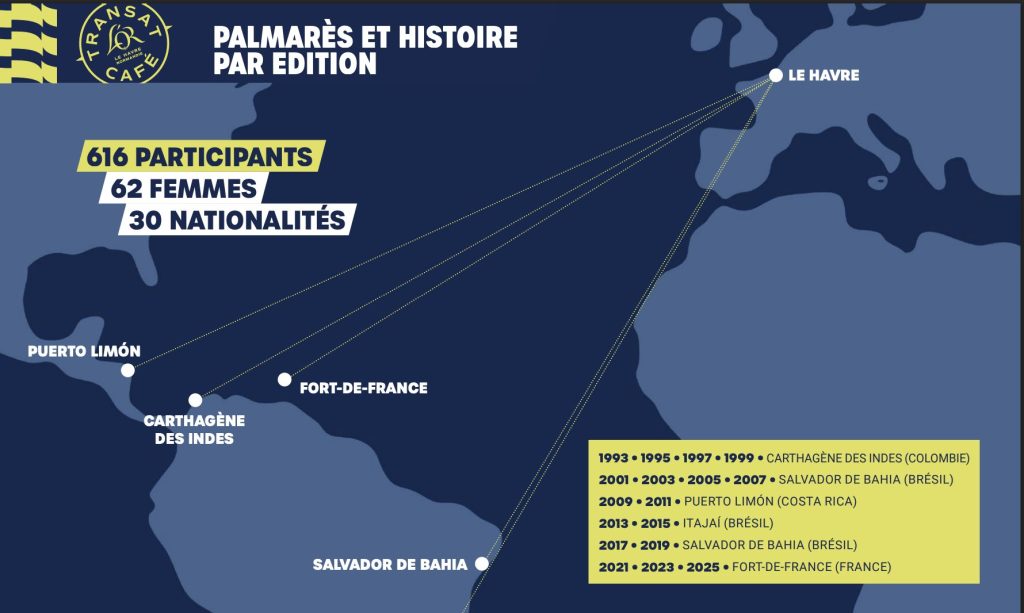 The Transat Café L’OR traces its spirit to the old Route du Café – the trade path linking France’s busiest port, Le Havre, to Martinique. In 1993, the race’s founders revived that link under the Transat Jacques Vabre name, honouring the storied French coffee brand. It quickly became one of the toughest double-handed ocean crossings on the calendar: 3,800 nautical miles of North Atlantic gales, doldrums, and tropical heat.