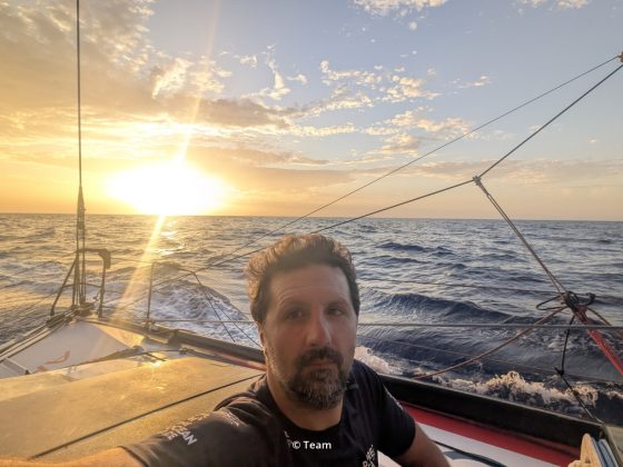 New Zealander Conrad Colman, sailing with Mathieu Blanchard aboard MSIG Europe, continues to gain ground. Over the past two days he’s improved his position by 120 nautical miles, holding pace with older foilers despite being on a lighter, earlier-generation hull.