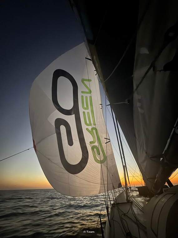 The loss of the big gennaker robs Edenred 5 of her downwind power, and Viabilis Océans immediately seized the lead. Baptiste Hulin and Thomas Rouxel are now running three knots faster and 16 miles ahead of Wewise, with 1 000 miles to go.