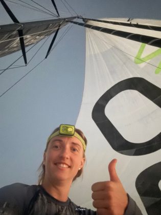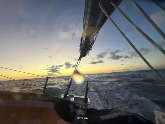 “We haven’t been holding back since the start,” co-skipper Benjamin Schwartz said in the morning check-in. “Every gybe is on the edge. You delay easing the mainsail because the moment you do, it’s five minutes grinding to get it back.”