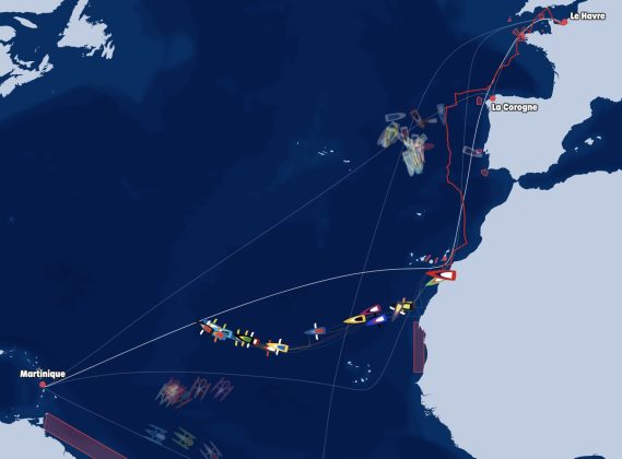 “It’s the choice between daring and self-preservation,” said one skipper in today’s update. Corentin Douguet and Axel Tréhin on SNSM Faites un Don lead the northerners, with Legallais and VSF Sports close behind. South, Seafrigo–Sogestran and Solano are banking on calmer seas.