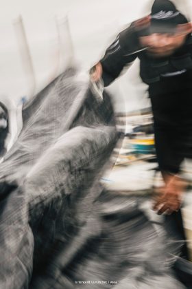 Out front, Tom Laperche and Franck Cammas on SVR Lazartigue (recently having raced in the Fastnet Challenge) demonstrated why their 32-metre trimaran is considered the benchmark for oceanic flight. Averaging 30 knots in the trades, they extended to more than 200 nautical miles over Sodebo Ultim 3. Yet the Doldrums soon lived up to their name. “We’re completely stopped, the sails flapping from side to side,” Laperche admitted during Friday’s check-in.