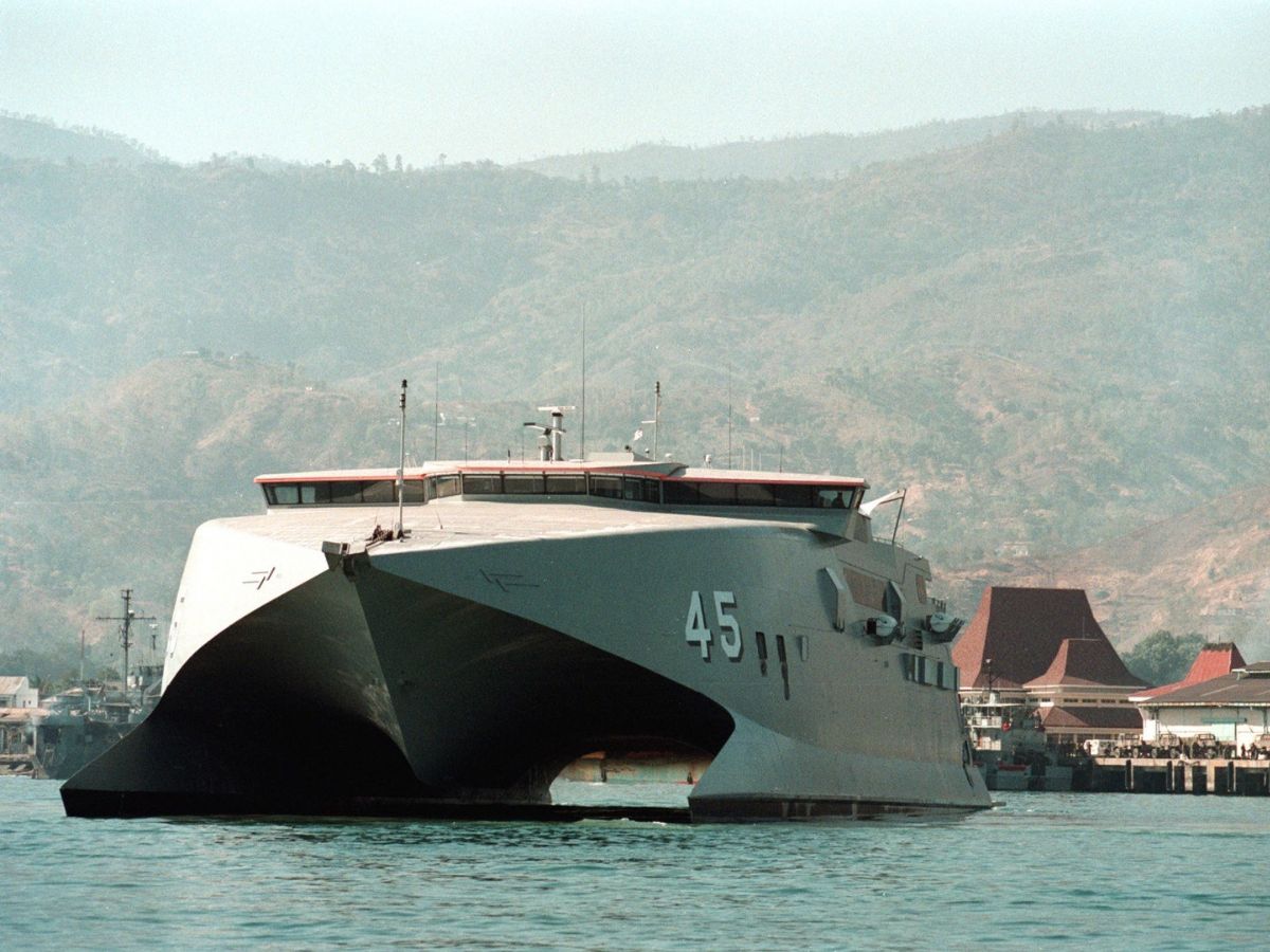 Defence forces took interest soon after. The US Navy’s Zumwalt destroyers use an inverted bow shape to manage pitch and reduce radar return. Their Independence-class littoral combat ships use a trimaran with similar traits. Taiwan’s Tuo Chiang-class corvettes run a wave-piercing high-speed cat hull and reach speeds around 45 knots. The Australian Navy’s HMAS Jervis Bay demonstrated what a military wave-piercer could do as a fast transport.