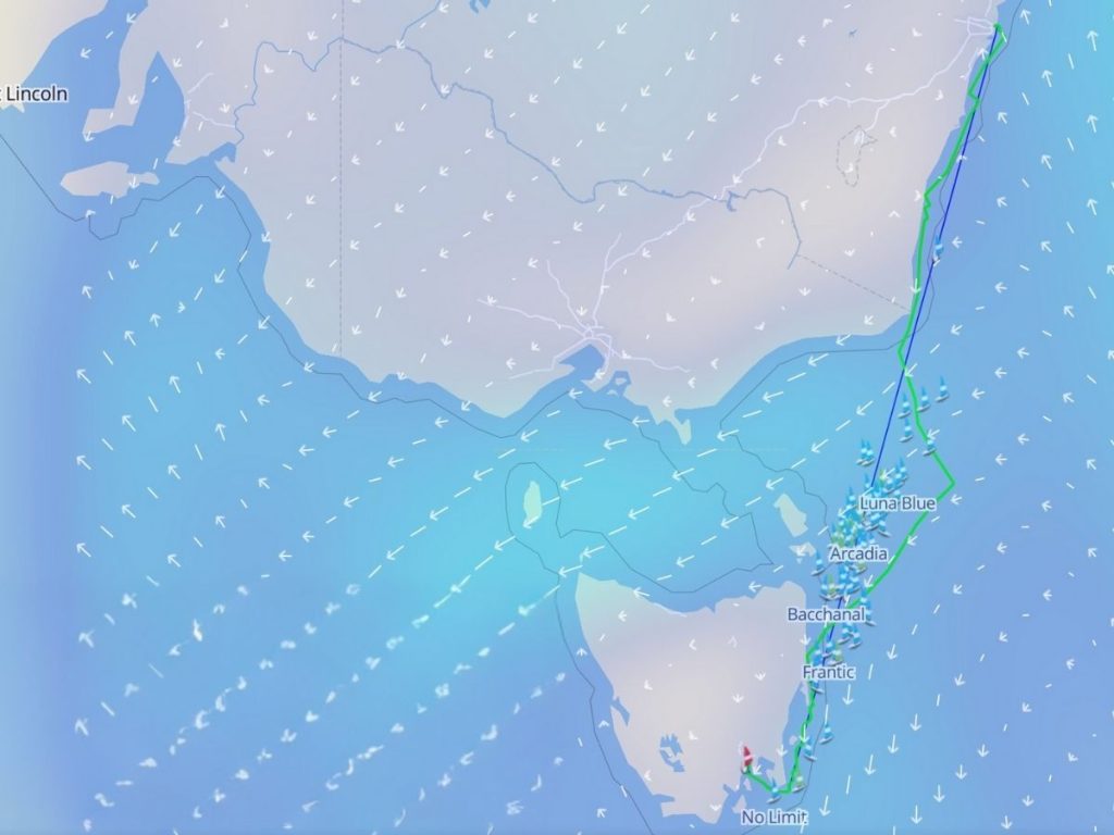 The most volatile phase came late. South of St Helens Point, breeze collapsed and became unstable. Boat speeds dropped sharply and the leaderboard churned, driven by positioning, bad luck (LawConnect ripped a huge gap in its mainsail, suffered from forebeam damage and was racing without instruments) rather than raw speed.