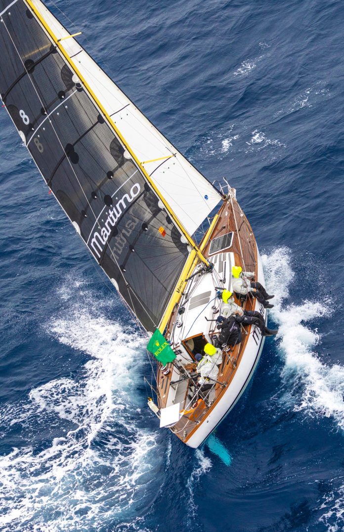 The boat may carry volume and comfort, but during the race, it was sailed like any serious offshore campaign.