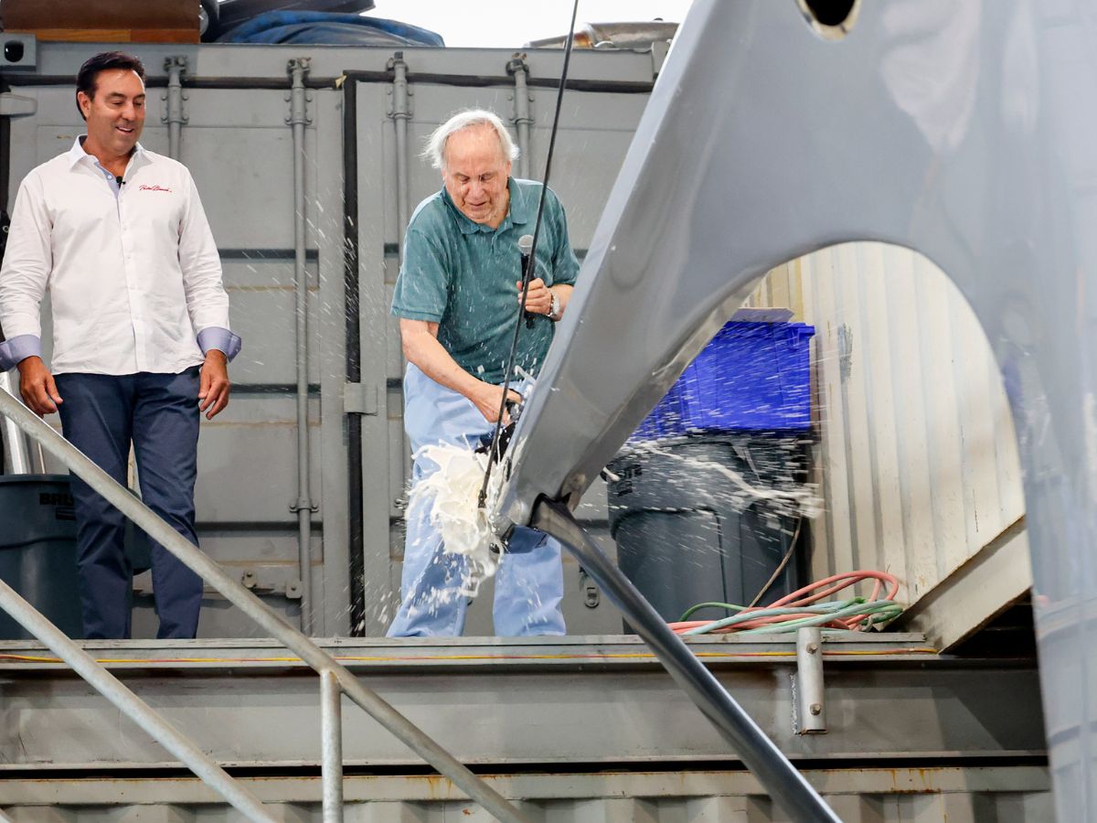 The christening was carried out by Australian yachtsman and Palm Beach Motor Yacht owner Colin O’Neil. The project has been led by Mark Richards, whose long involvement with the boat stretches back over two decades and now continues under new ownership.