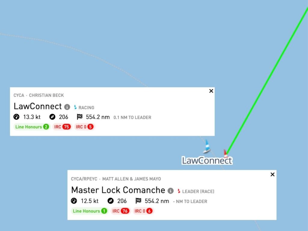 Up ahead, LawConnect has tacked onto port, splitting from Master Lock Comanche.