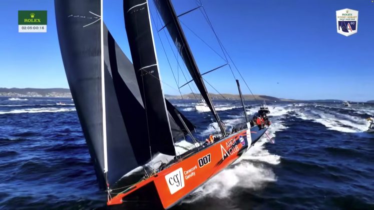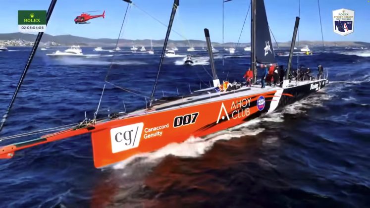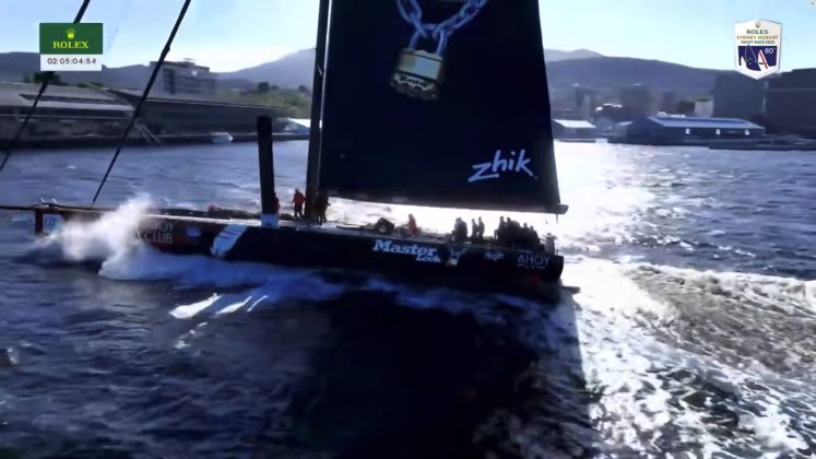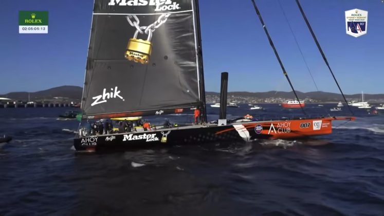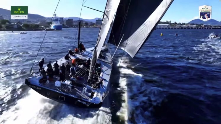 04:57PM AEDT – Just over 10 minutes after Santana arrived in Hobart, Aaron Zhou’s Beneteau 47.7 Marguerite, now second to last in the fleet, crossed the finish line.