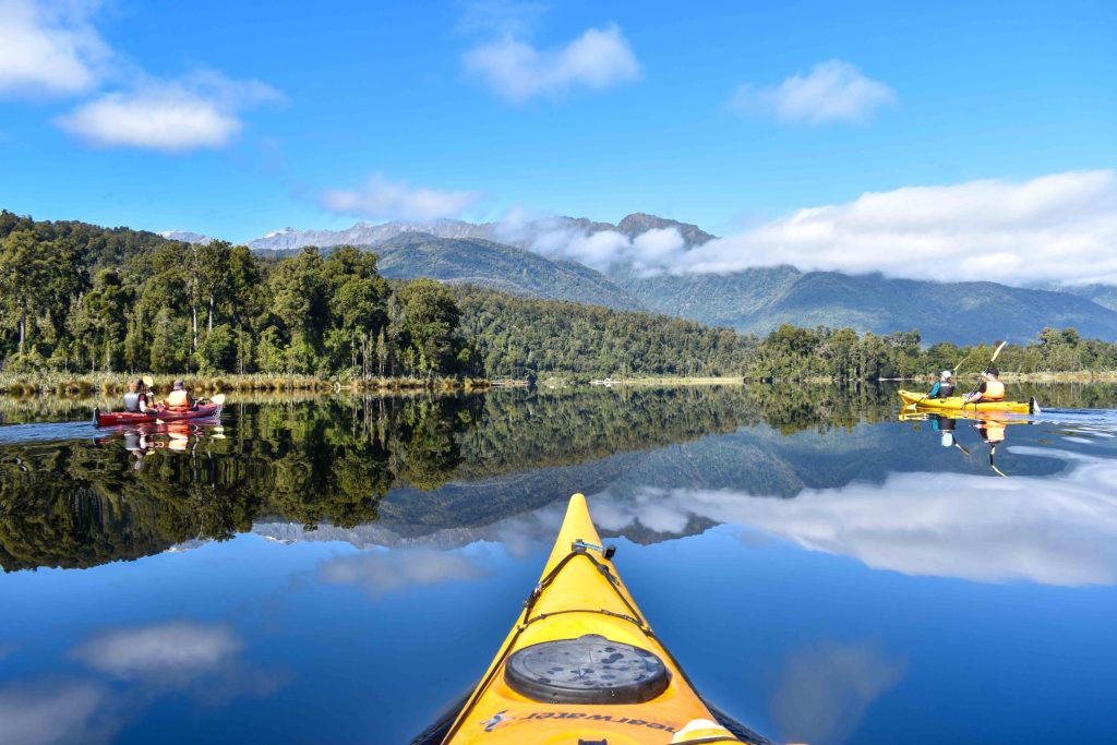 Somewhat under the radar compared to other West Coast lakes, Mapourika has some of the most impressive mountain reflections and stunning views, along with some of the best year-round brown trout and seasonal salmon fishing on the Coast. Warm weather makes it the ideal spot to swim, kayak, or paddleboard.
