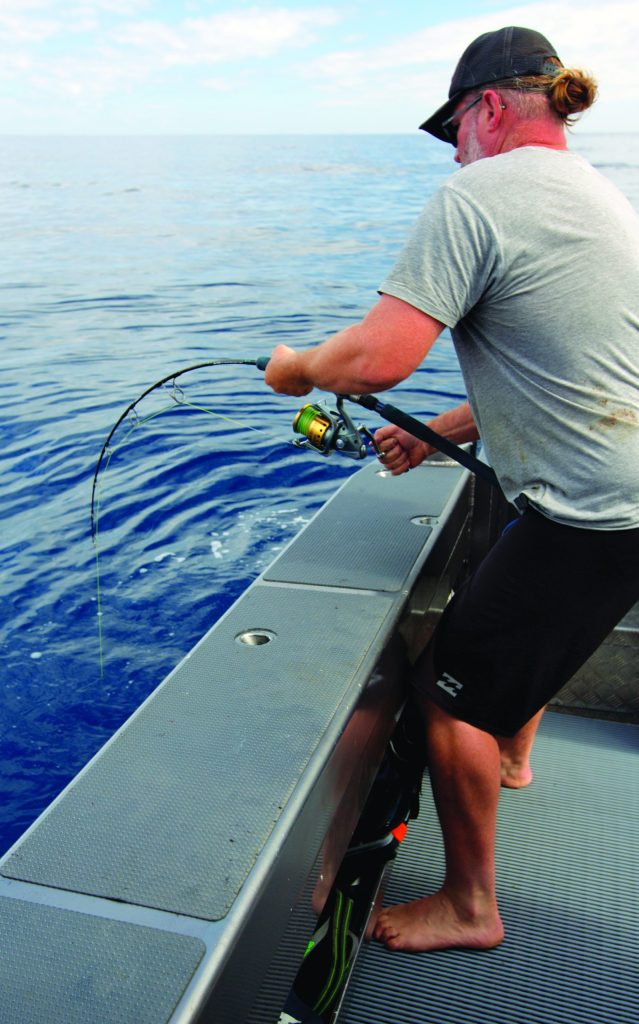 Whether trolling or live baiting, a slightly different braided line called hollowcore has been a game changer for me. Not only is it very thin, it is – as its name suggests – hollow. So instead of having to use relatively cumbersome and weighty 80W reels, which were traditionally recommended in case a decent blue marlin hopped on, it is now possible to use a 50W or even a straight 50-size reel instead.
