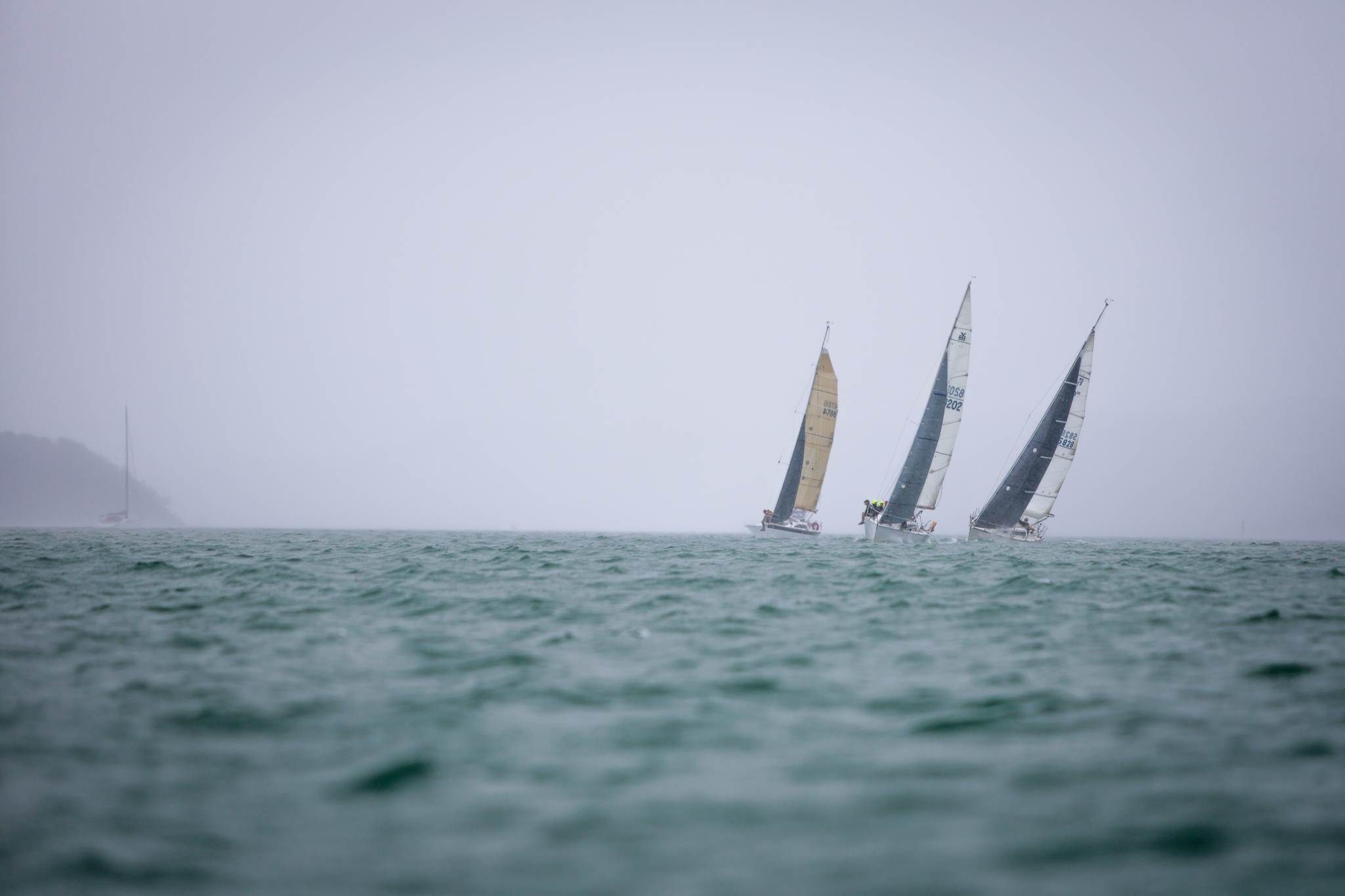 At the top end is Equilibrium, Graham Matthews’ Marten 55 Botin Carkeek 55. Close behind on length is Wired, the 52-foot TP52 sailed by Rob Bassett and Brett Russell. Completing the larger end of the fleet is Explore Racing, William Goodfellow’s Elliott 50 SS. These three formed a clear fifty-foot-plus grouping.