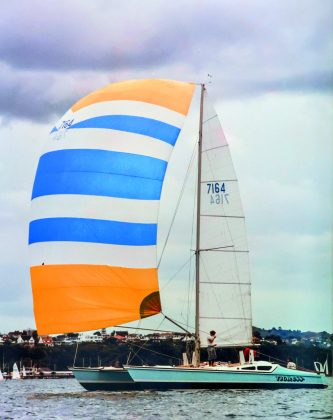 However, Mansell was still keen for another crack at the OSTAR and discovered the late Ron Given’s 11m catamaran Tigress for sale. Designed as a cruiser/racer, Tigress was then one of the few multihulls in New Zealand capable of a Trans-Atlantic race. After buying Tigress from Given and renaming her New Zealand Challenger, Mansell, Given and two experienced Paper Tiger skippers raced the yacht in the 1983 Coastal Classic, one of the roughest races on record. Many fancied boats, including pre-race favourite Sundreamer, pulled out, and Mansell won comfortably.