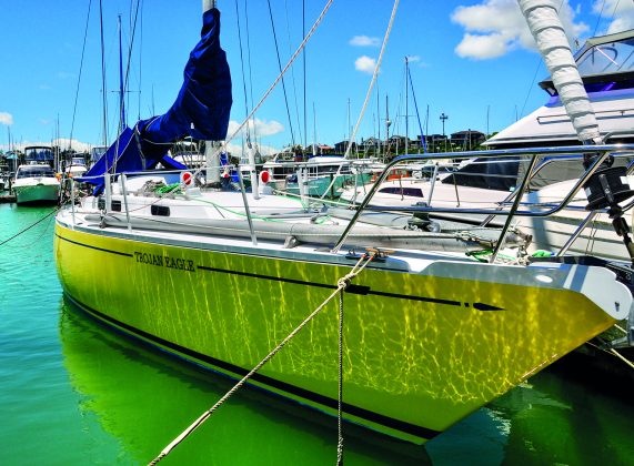 By now, Mansell was seriously into sailing and, after a Z-class, bought the 5.7m clinker bilge keeler Shoestring. Dreaming of something bigger, Mansell purchased the plans for a Nova 28 from Alan Wright, which he had built by Roy Talbot in Nelson. Mansell considerably modified the design, raising the topsides 150mm, adding a heavily cambered flush deck and 600lb (272kg) of extra ballast, all done with Wright’s approval.