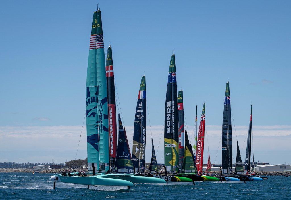 The fleet, already reduced with Spain, New Zealand and Switzerland all out of play, felt bustling and busy as bottom gates funnelled boats into tight, awkward situations. The Fremantle Doctor remained in charge, clean and firm, and by the late afternoon the water looked darker in patches, signalling the shift that would soon define the race.