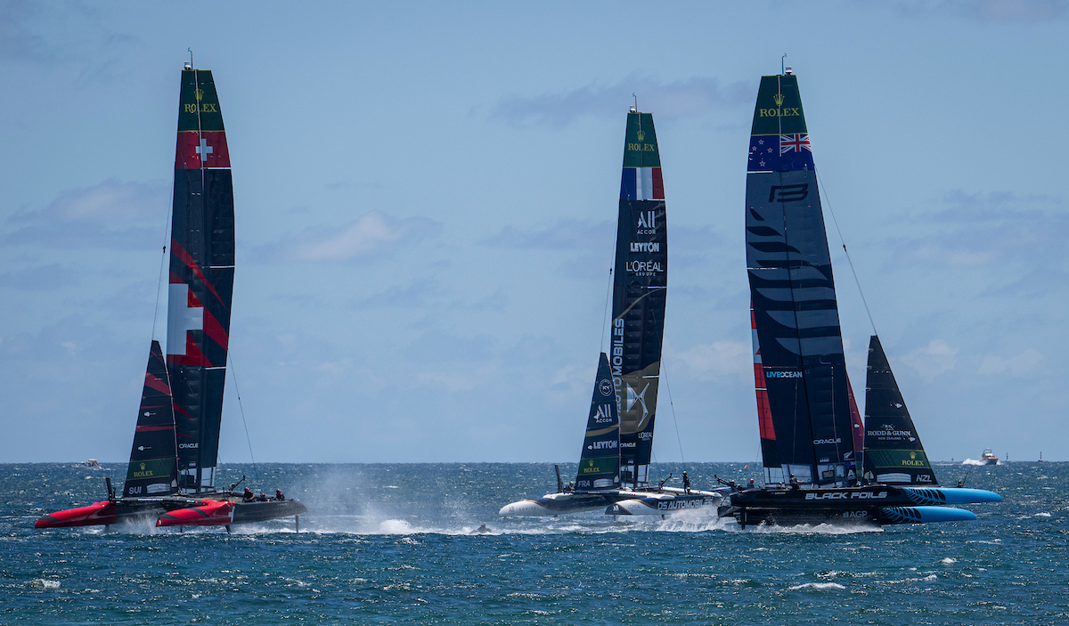 Switzerland were the right-of-way boat on starboard, while New Zealand, approaching on port, failed to keep clear, bringing a disqualification for the Black Foils. Switzerland, despite having right of way, also retired due to the damage sustained, leaving both teams out of the race within moments of the collision.