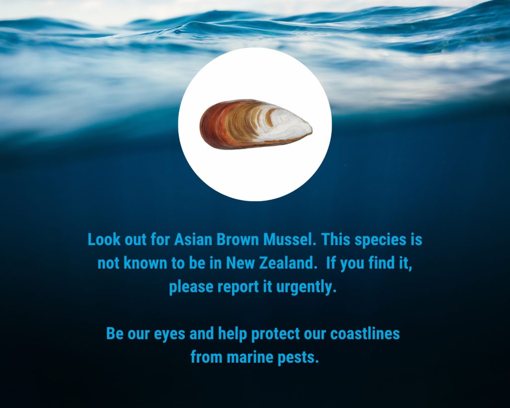 If the Asian brown mussel got here, it would compete for food and space with green-lipped mussels.