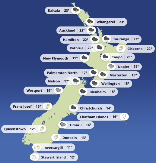 Chatham Islands remain more active, with periods of rain that may be heavy and thundery, easing to showers Friday night and clearing early Sunday. Strong northerlies turn to strong southerlies on Saturday afternoon, easing Sunday.