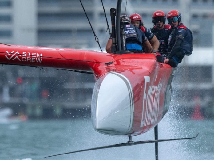 Australia rounded the final mark first and crossed the finish line at 12:50:52 to secure the race win and the Auckland regatta. Emirates GBR finished 14.1 seconds behind, with Spain 16.1 seconds back.