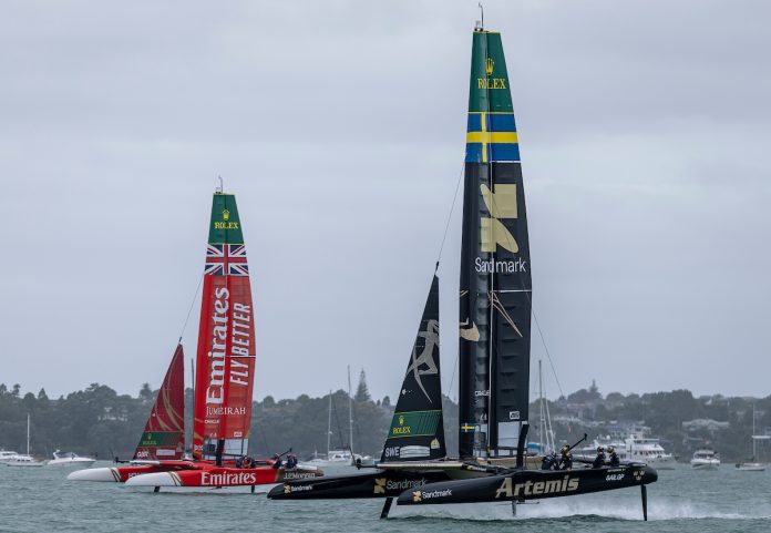 The Waitematā Harbour delivered proper City of Sails drama. Gusts climbed beyond 50 km/h on Sunday. For crews control was the main concern. Australia, however, looked settled across the weekend. Stand in wing trimmer Glenn Ashby has made an immediate impact.