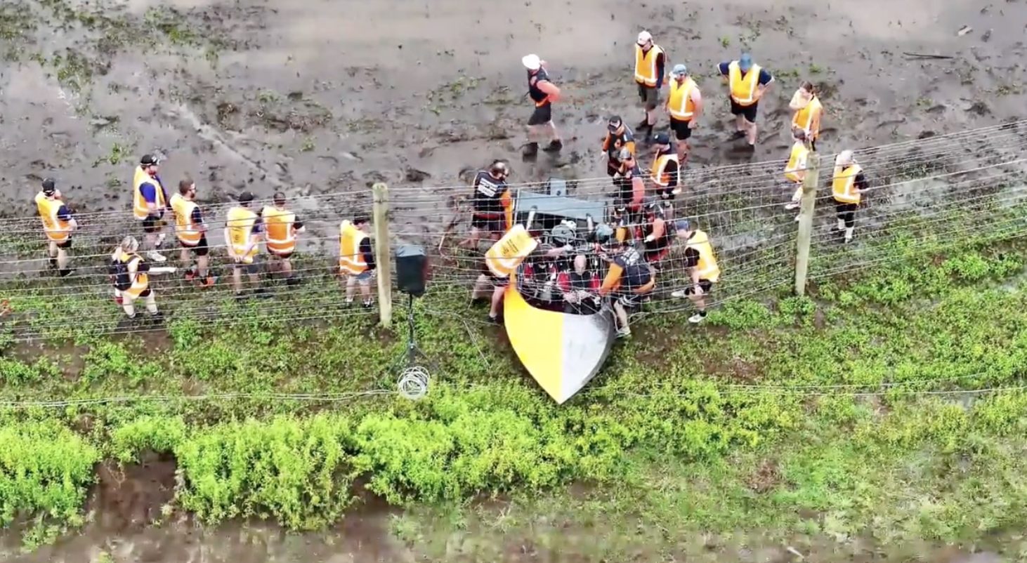 Boat 66, driven by Bryce Barton with Kylie Barton navigating, missed a crucial turn and struck the safety fence during their run in Taranaki. The moment unfolded at pace. From the live broadcast, pooled water on the racing line appeared to draw the crew’s attention as they approached the corner. In managing that wet patch, the turn arrived fast and the boat ran wide.