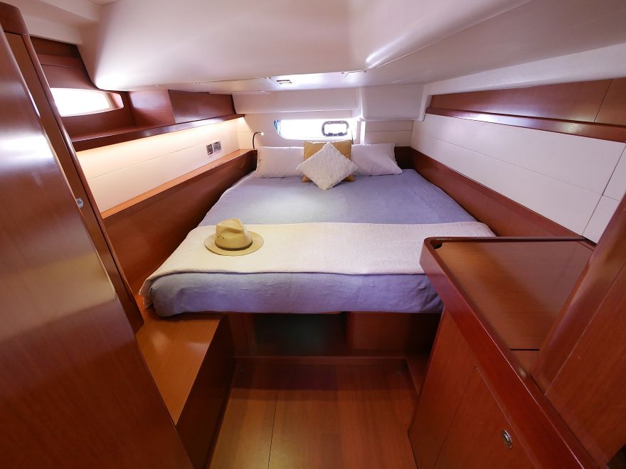 In addition, you will find a separate bow cabin with its own head, suitable for crew or teenagers. The layout works well for families, visiting friends or couples cruising together.